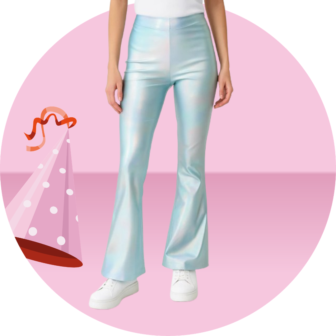 Broek flared iriserend roze dames maat S/M