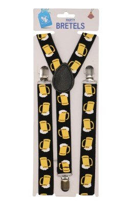 Maak een statement met deze grappige bier bretels in zwart en geel! Het speelse ontwerp met bierflessen en glazen maakt ze perfect voor themafeesten, festivals of als ludiek accessoire voor je outfit. De bretels zijn verstelbaar voor een comfortabele pasvorm en voegen een unieke, humoristische flair toe aan je look. Ideaal voor bierliefhebbers die op een leuke manier willen opvallen!