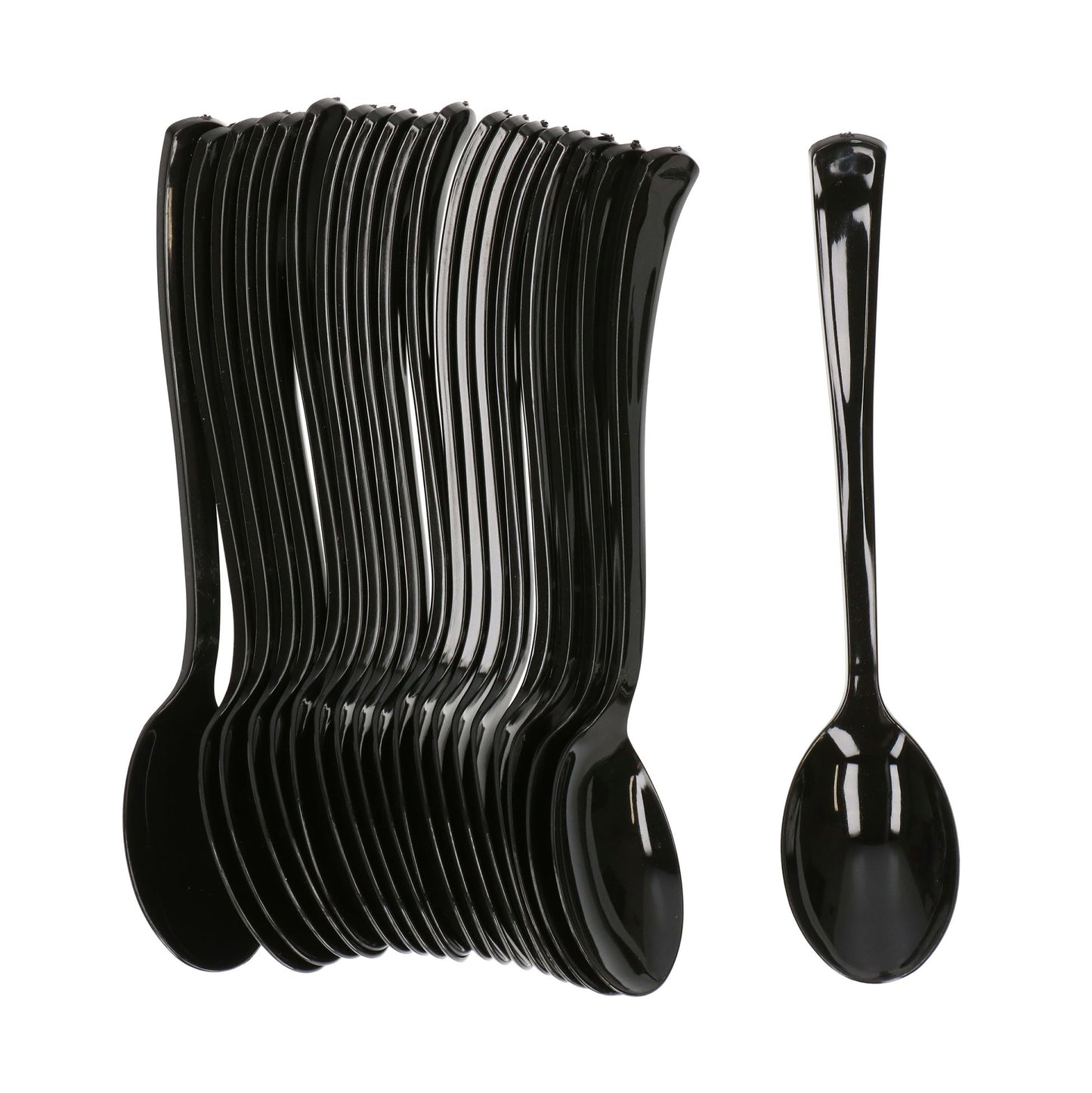 Lepels - herbruikbaar - plastic - zwart - 20 stuks