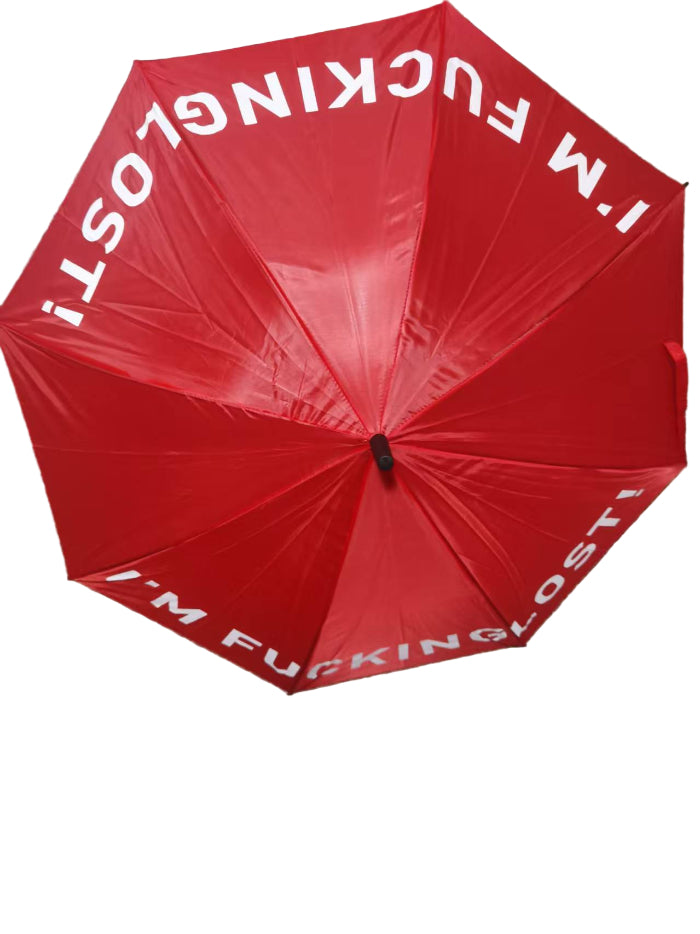 Regen? Geen probleem! Met deze paraplu laat jij meteen weten dat je echt geen idee hebt waar je bent. Stoer, grappig en opvallend: de tekst âI'm fucking lost!â zegt alles. Perfect voor festivals, stadswandelingen of de dag dat Google Maps weer eens niet meewerkt.