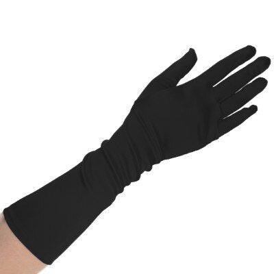 Maak je outfit compleet met deze lange zwarte partyhandschoenen! Ideaal voor een elegante uitstraling op een gala, feest of andere chique gelegenheid. De lange pasvorm zorgt voor een verfijnde uitstraling, terwijl het zwarte design perfect te combineren is met elke outfit.