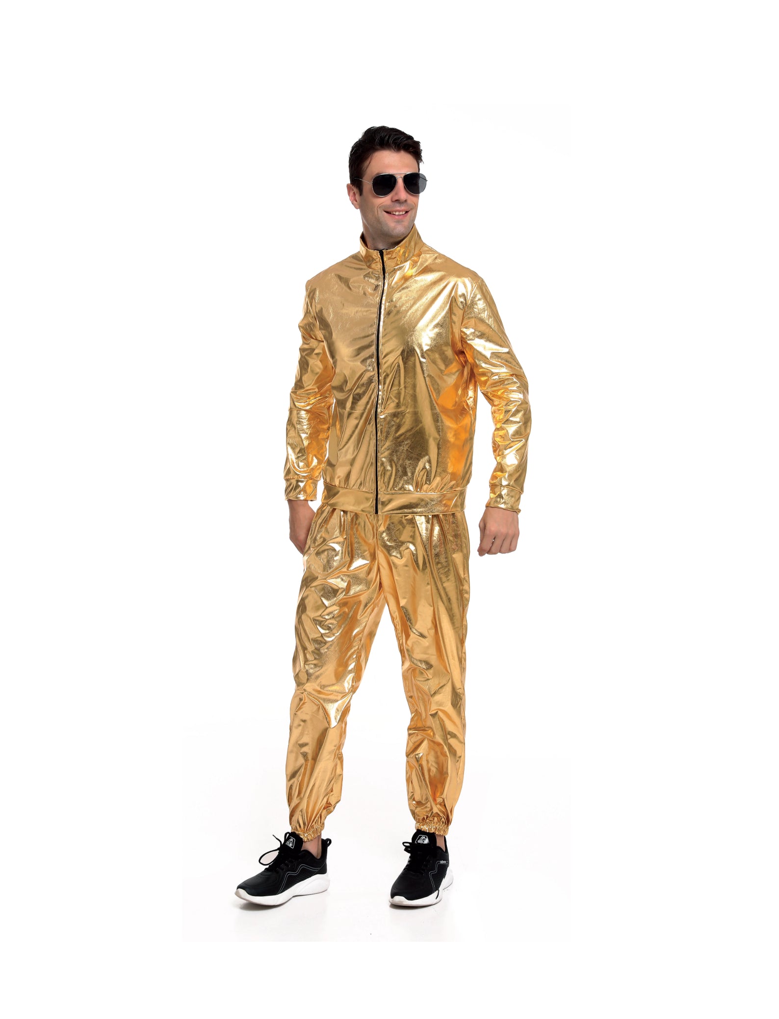 Met het SoLow Trainingspak Goud S/M ben je verzekerd van een opvallende en stijlvolle look. Het gouden design geeft je outfit een luxe uitstraling, terwijl de comfortabele pasvorm je de vrijheid biedt om te bewegen en te dansen. Dit trainingspak is perfect voor feesten, festivals of als je gewoon je stijl wilt laten spreken. Voeg wat glamour toe aan je outfit met dit schitterende gouden trainingspak!