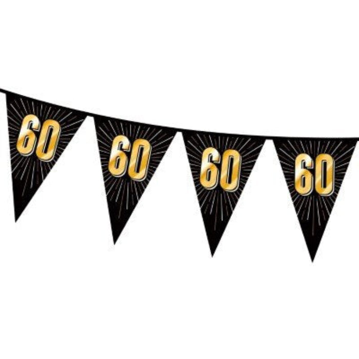 Vlaggenlijn 60 jaar zwart/goud 15 vlaggen 5m